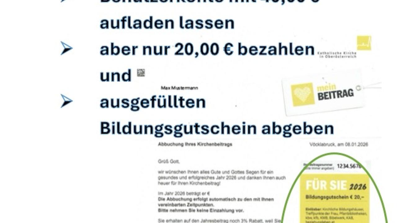 März, 2026 Bildungsgutschein der Kirchenbeitragsstelle jetzt einlösen! Ab jetzt könnt ihr den Bildungsgutschein der Kirchenbeitragsstelle jederzeit bei uns einlösen! Einfach euer Konto mit mind. 40€ aufladen und nur 20€ selbst bezahlen!